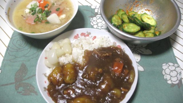 15日(日)の食卓から。左は豚汁です。豚小間切れ肉(178円)と冷凍豚汁用の具(178円)残っていた豆腐を使ってます。【レビュー投稿で100円OFFクーポン】アマノフーズ いつものおみそ汁贅沢 豚汁×10個 フリーズドライ 味噌汁 インスタ...