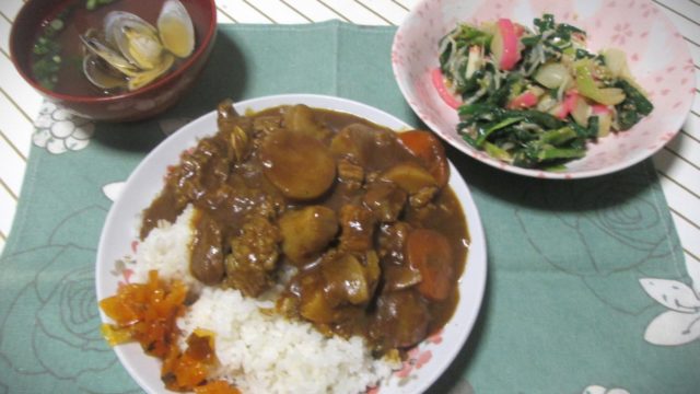 5日(日)の食卓から。左はまたあさりのお吸い物です。大粒なのに168円と安かったので前日までの味噌汁と違ってお吸い物にしました。ただ、中国産ですが(^^;。楽天市場中は牛すじカレーライスです。煮物で使おうと下ごしらえした里芋(98円)の冷凍...