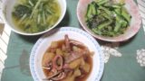 じゃなくてニンジンと大根のダシ煮です(^^;。人参は先日の肉じゃがの残りで、大根は見切り品です(30円)。薄く切ってだしの素で煮るだけですがシンプルでおいしいです。