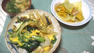 3月26日(日)の食卓から 自作メニュー3/26(Sun) X Facebook はてブ LINE Pinterest コピー 2023.03.27 26日(日)の食卓から。 3/26(Sun) 左は昨日の残りで、ジャガイモとイカの煮物です。 中は豚汁。見切り品の豚ロース(119円/半額)と豚汁用の水煮野菜(298円)豆腐(78円)を使用してます。唐辛子をふりかけて。 右は昨日の残りで大葉・梅ちりめん・角天・レタスを具材として使用したナムルです。山椒辣醤で辛みをプラスしてます。刻みのりを加えて。 本日のかかった食材費は495円でございました。 *全て税抜きで8%の消費税がこれ以外にかかっております。