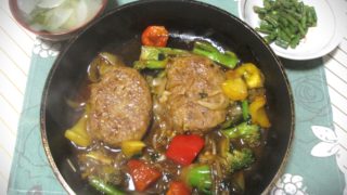左は29日(月)に作った筑前煮の残りです。筑前煮材料の水煮・チキンランチョンミート・枝豆を使用しています。チキンランチョンミートは筑前煮でも使えます。