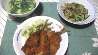 右は野菜セット(98円)と竹輪(68円)のオイスターソース炒めです。