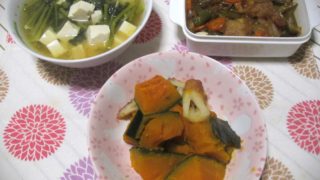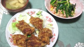 10日(土)の食卓から。左は昨日の残りで、あさりの味噌汁です。中は白身魚の香草チーズソテー(214円/20%引き)です。オーブンで焼きました。蒸したブロッコリー(49円/半額)を添えて。右は昨日の残りで、れんこんとこんにゃくのピリ辛炒め煮で...