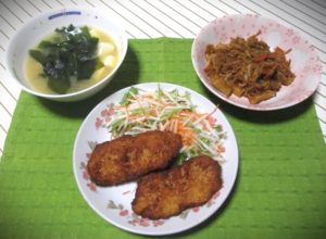 8月4日(月)の食卓から 自作メニュー8/4(Mon) X Facebook はてブ LINE Pinterest コピー 2025.08.05 4日(月)の食卓から。 8/4(Mon) 左は木綿豆腐(68円)とわかめの味噌汁です。 タスカジ 中は白身魚のマヨネーズパン粉揚げ(179円・半額)です。フライパンで焼く代わりに、パン粉が塗してあったので油で揚げてみました。カット野菜(108円)とサラダドレッシング(38円/20%引き)を添えてます。 右は残っていた切り干し大根を使った煮物です。練り物の丸天(118円)を加えて。 タスカジ 本日のかかった食材費は511円でございました。 *全て税抜きで8%の消費税がこれ以外にかかっております。