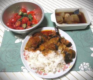 中は5月16日(金)に作った、マレーシア風カレーです。マレーシア産のカレールーを使って作りました。手羽元肉となすが具材です。解凍がちょっと大変(^^;。