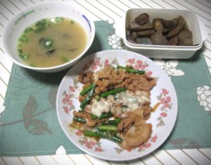 9月9日(火)の食卓から 自作メニュー9/9(Tue) X Facebook はてブ LINE Pinterest コピー 2025.09.10 9日(火)の食卓から。 9/9(Tue) 左は昨日の残りで、しじみの味噌汁です。 中は見切り品豚チーズプルコギ(226円/半額)です。それににんにくの芽(98円)入れて炒めてます。にんにくもたっぷり。 右は昨日の残りで、ゴボウとコンニャクの炒め煮です。鷹の爪の輪切りを入れて。 本日のかかった食材費は324円でございました。 *全て税抜きで8%の消費税がこれ以外にかかっております。