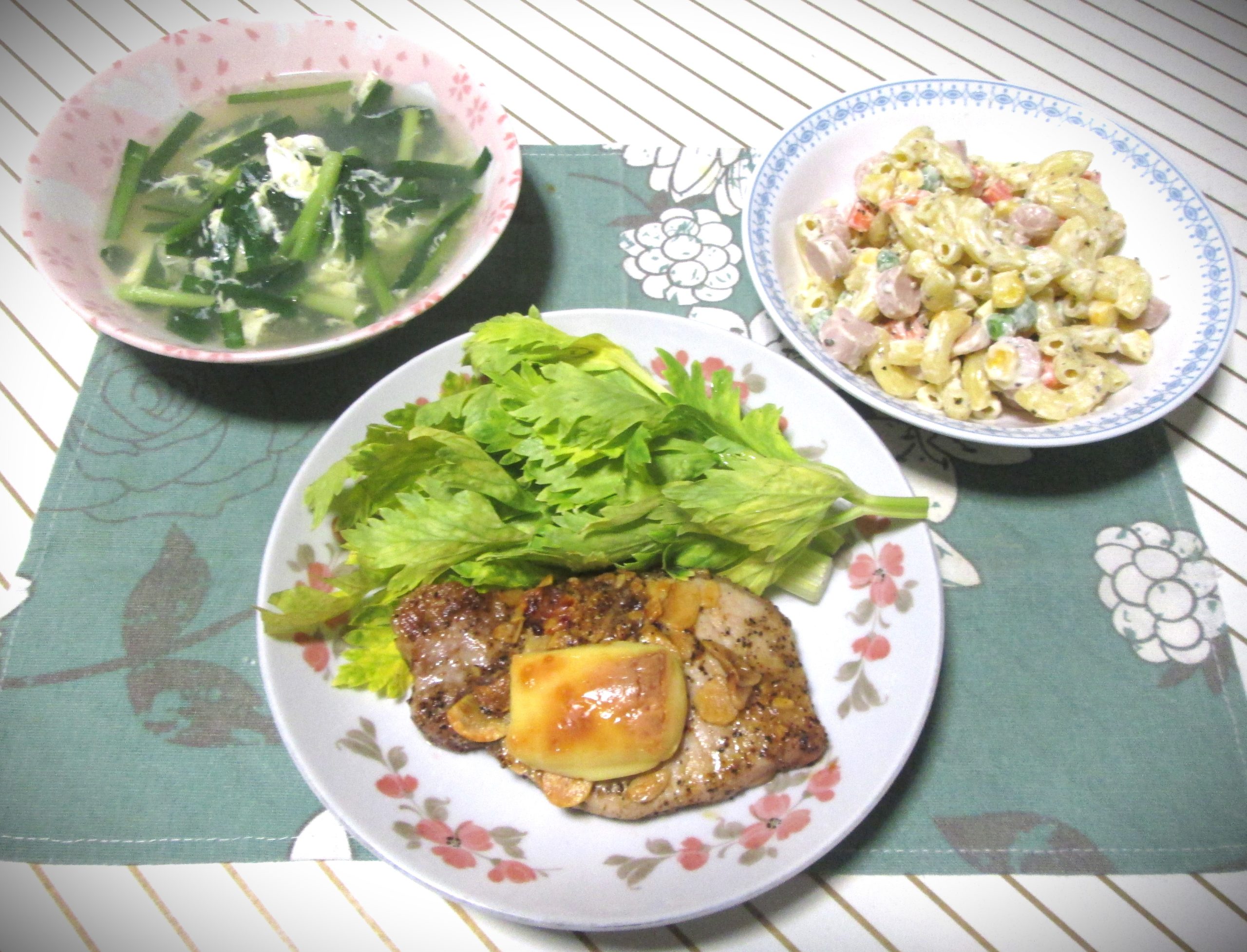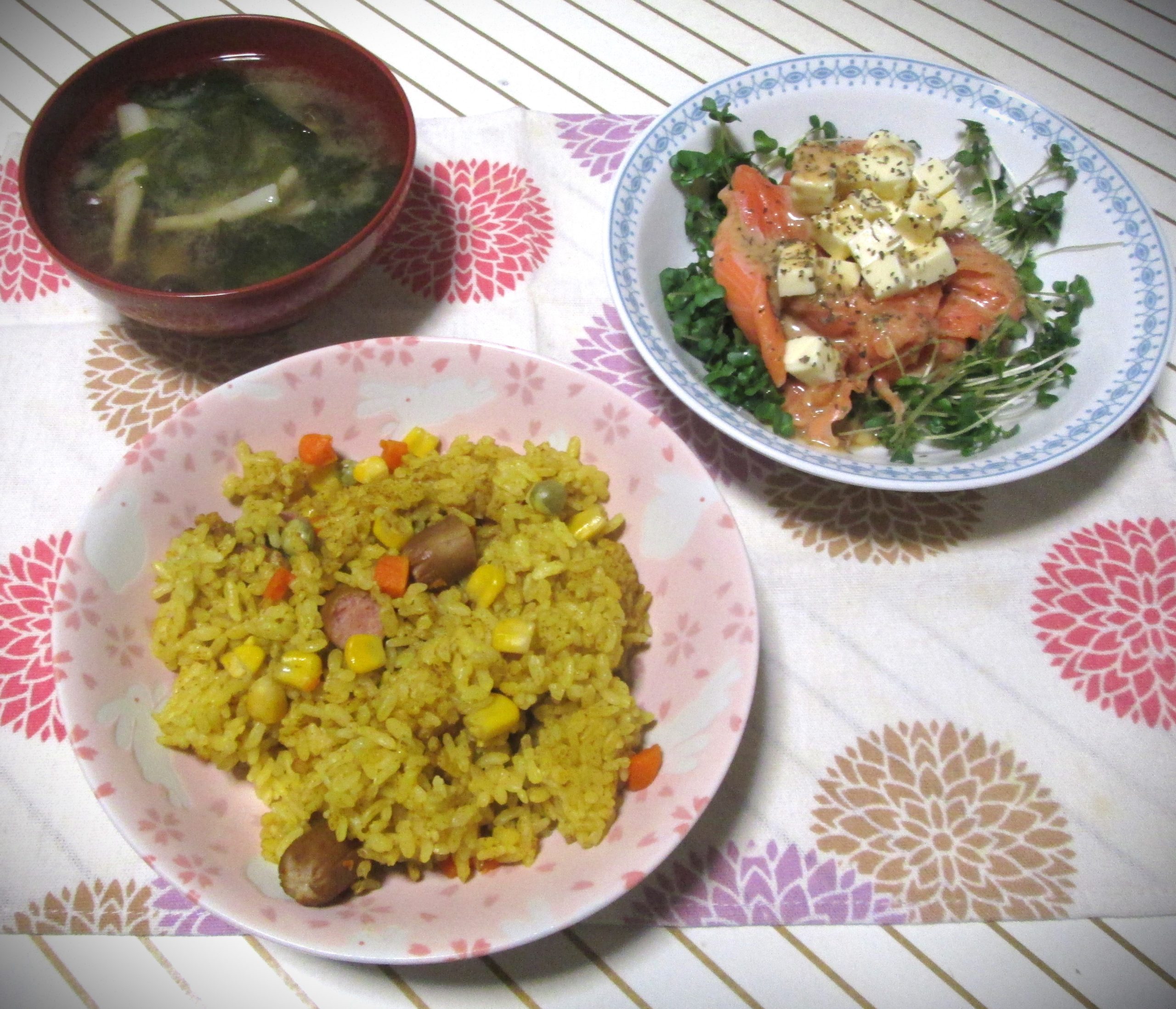 左は昨日の残りで、ブナシメジとワカメの味噌汁です。