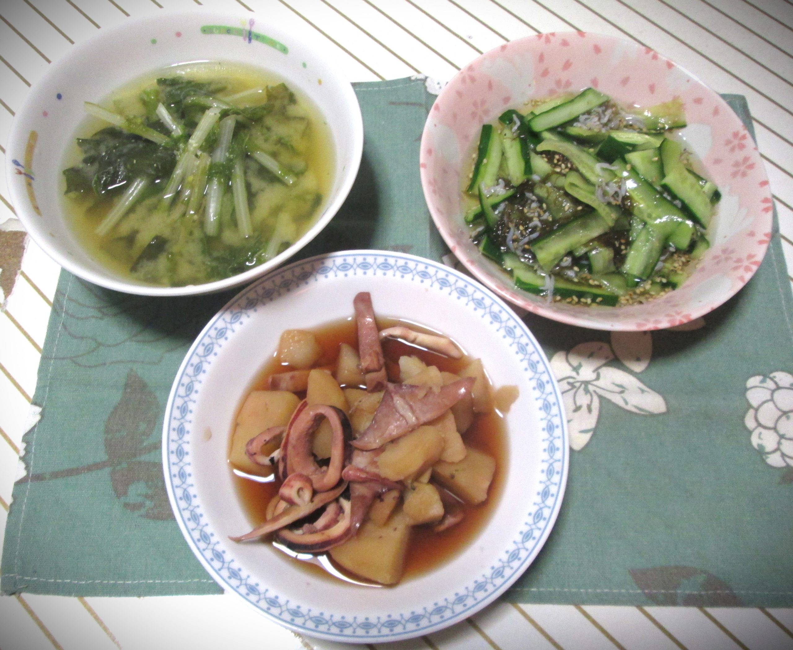 左は昨日の残りで、ひきわり納豆とおくらの納豆汁です。ネバネバしてます(^^;。