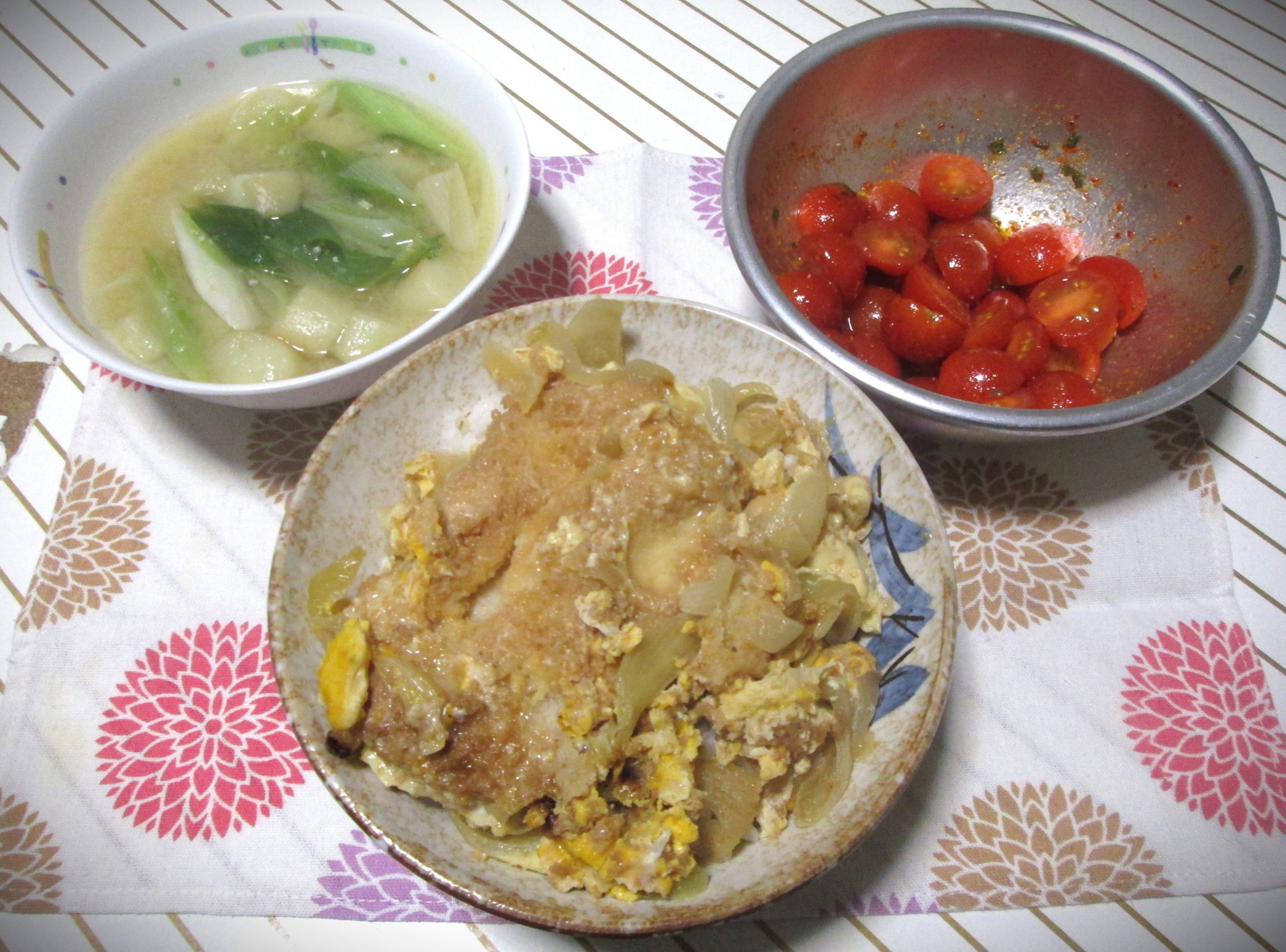 中は10日(火)の残りで、カツ丼です。玉ねぎを使ってます。