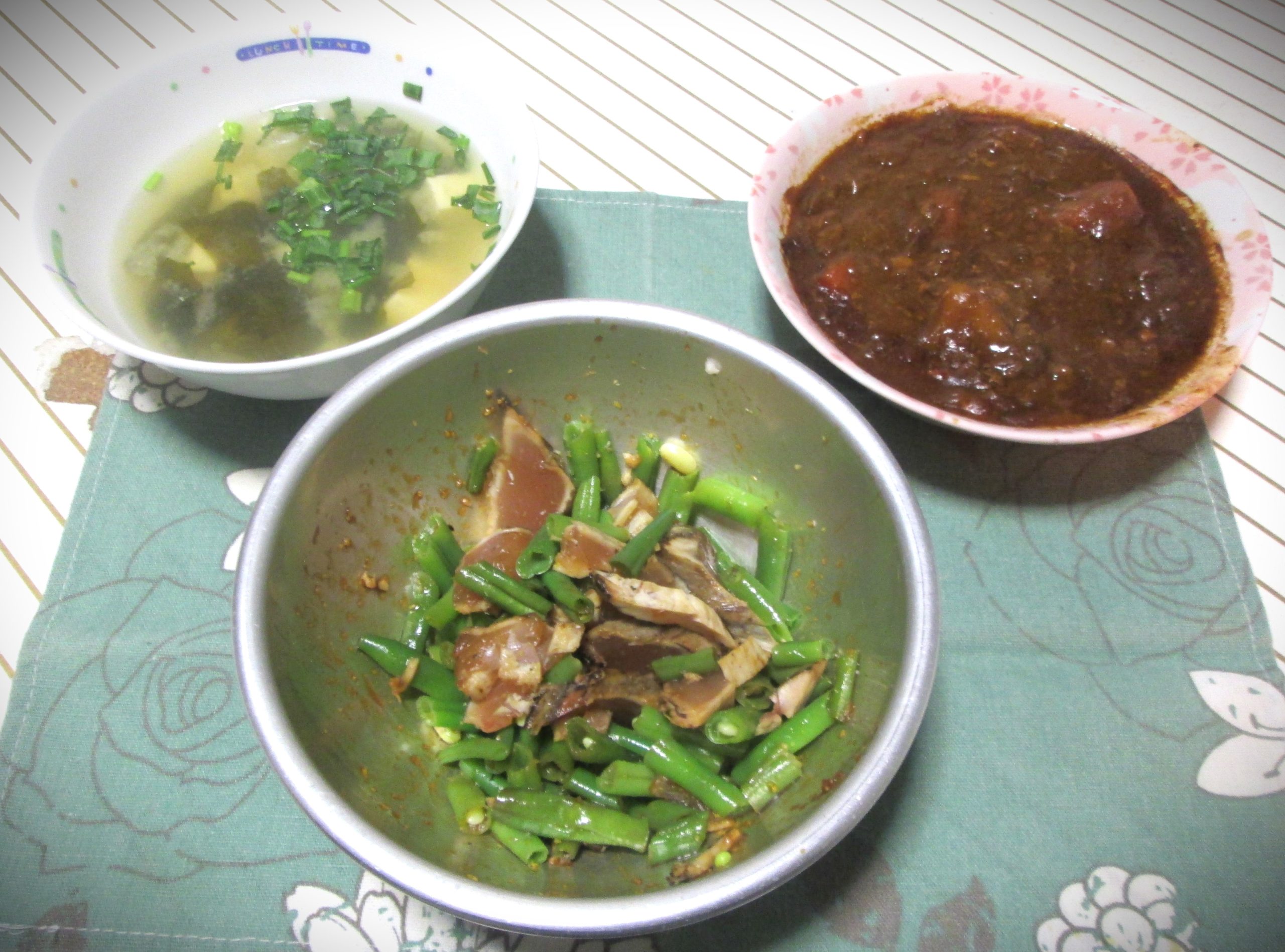 左はなめこ(98円)と油揚げの味噌汁です。