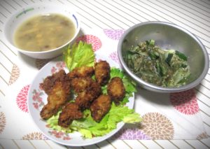 Today’s dinner features a mix of familiar home-style dishes and a simple fried main.