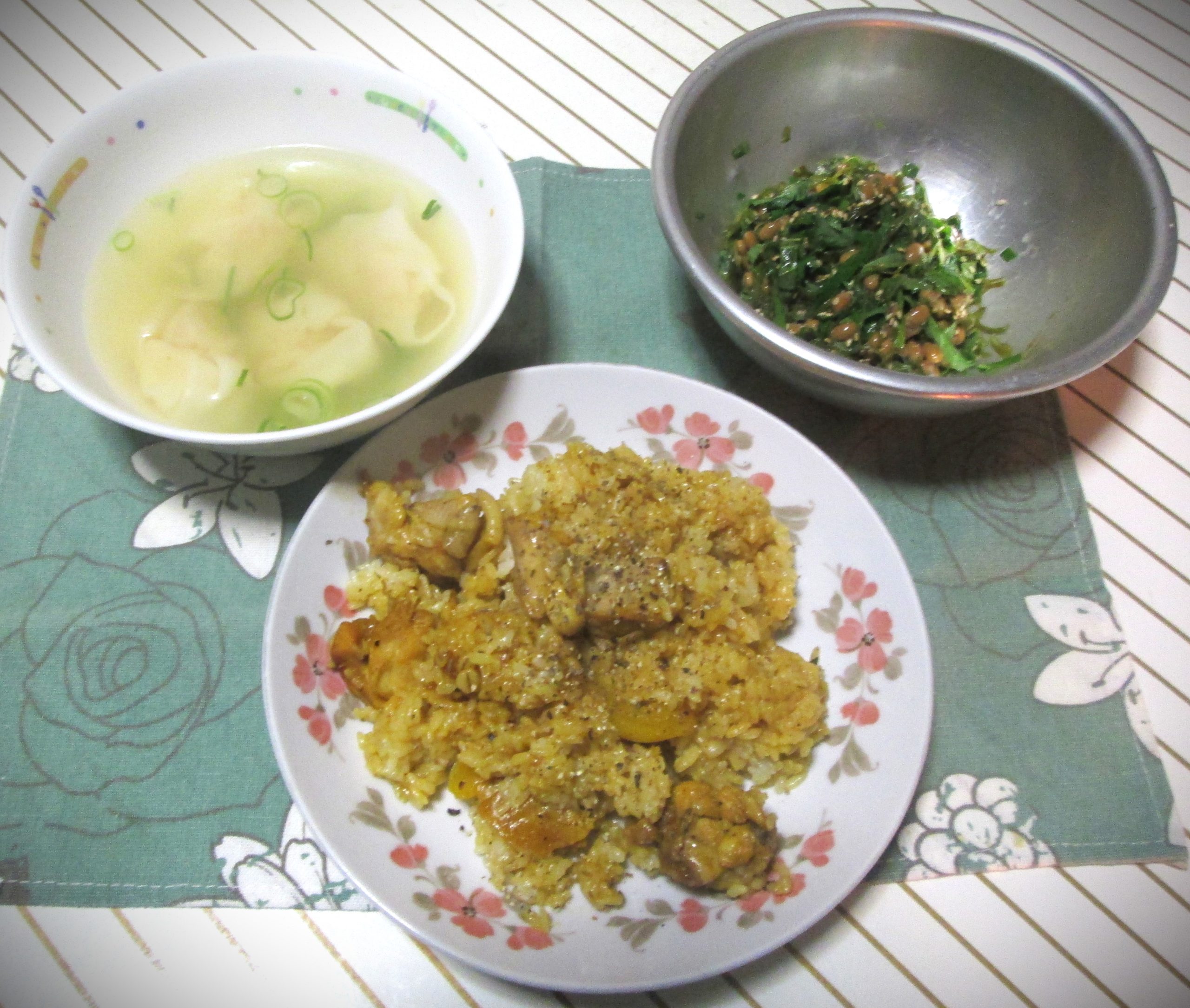 Today’s dinner is a casual home-style meal that mixes leftovers with a simple rice dish.