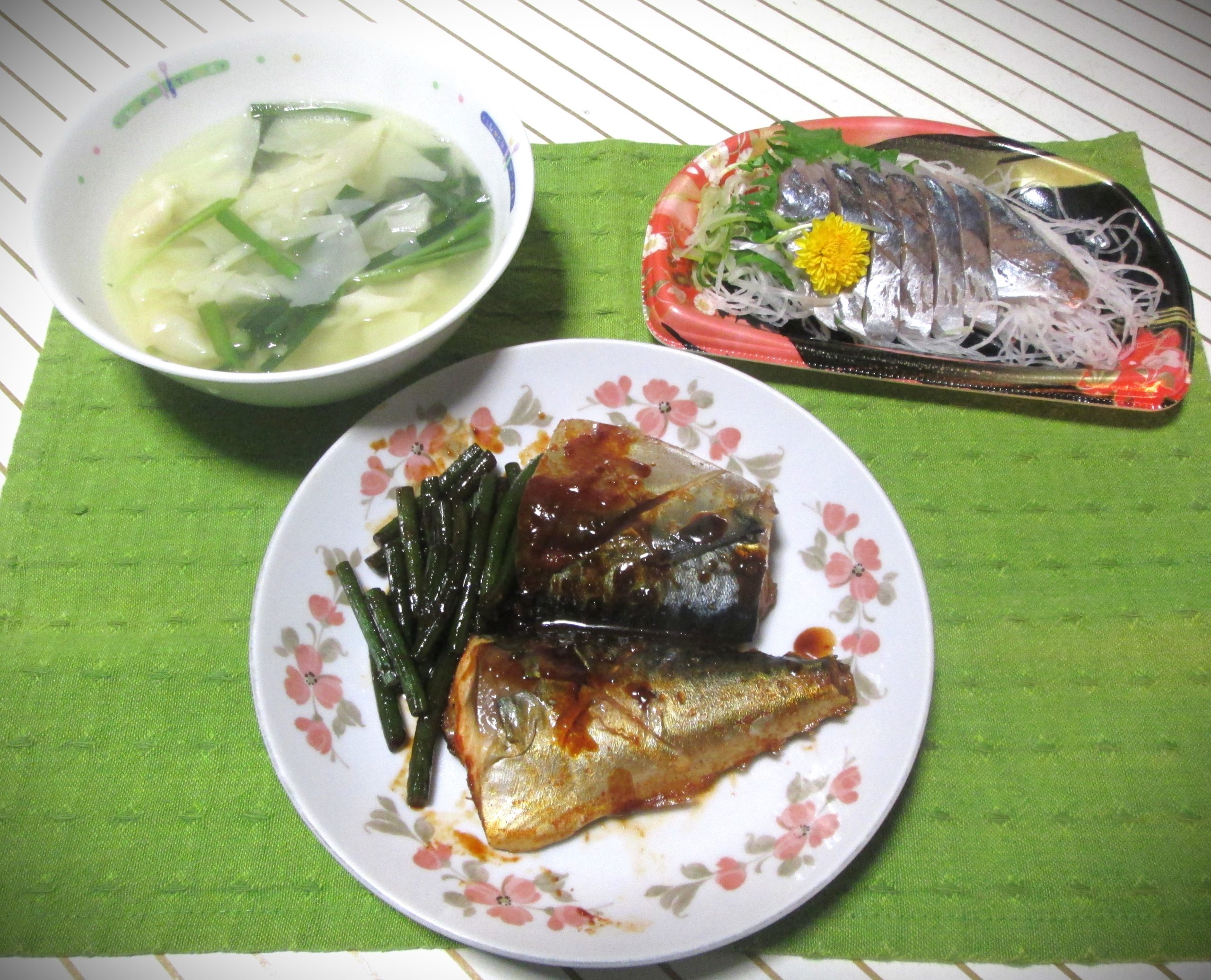 On the right is fresh horse mackerel sashimi, also bought at a discount.