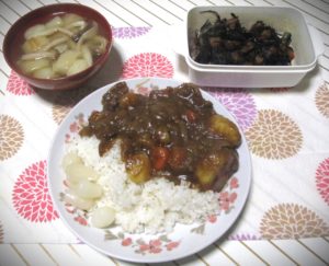 Today’s dinner is a comforting home-style meal centred around curry and traditional side dishes.