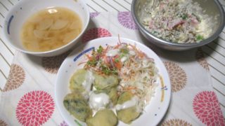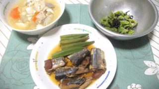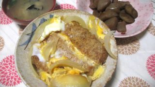 8日(月)の食卓から。左はしじみ(232円)の味噌汁です。GreenSpoon中は見切り品チキンカツ(318円/20%引き)を使ったチキンカツ丼です。玉ねぎ(108円)を切って麺つゆでチキンカツと共に煮てます。右は昨日のカレイの煮つけで残っ...