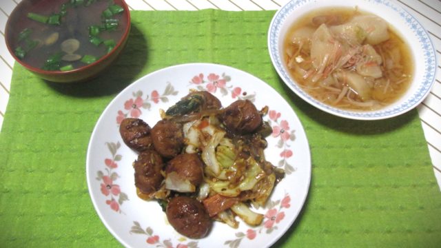Greenspoon16日(金)の食卓から。左は昨日の残りで、しじみのお吸い物です。中は実家で貰った冷凍の黒酢鶏肉団子炒めです。ミックス野菜(98円)に残っていたもやしと冷凍刻みオクラも入れてます。にんにくを入れてます。右は冷凍庫に残ってい...